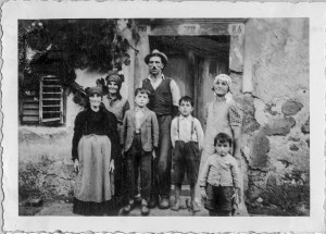 Zaman se trudim, da bi odkrila kaj o družini na tej fotografiji, ki me je pritegnila kot zelo tipična za neko obdobje v Loški dolini ali vsaj kot moja predstava o njem. Povrhu me spominja na podobne slike sorodnikov, ki sem jih videvala kot otrok. Fotografijo je v enem od svojih albumov ohranila Ivanka Janežič iz Vrhnike, vendar ni o njej ničesar zapisala. Tudi ne vemo kdo, kje in kdaj je sliko posnel. Letnico 1935 sem sliki prisodila čisto na slepo. Celo vklesani napis na kamniti prekladi vhodnih vrat se ne da razvozlati in ne pove ničesar. Tudi trditev, da je družina iz Vrhnike, je mogoče zmotna, tem bolj, ker gre verjetno za kopijo starejše fotografije, prinesene bog ve od kod, ki pa je Ivanki Janežič gotovo veliko pomenila, da je poskrbela zanjo kot pri še nekaterih drugih slikah iz njenih albumov.