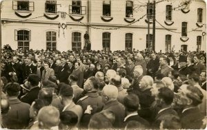 Slika je nastala 17. oktobra 1937 ob odkritju spomenika kralju Aleksandru I. Zedinitelju na Rakeku. Množica stoji pred železniško postajo. Obrnjena je k spomeniku.