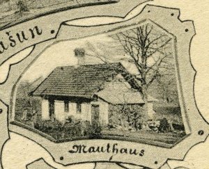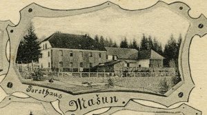 Na sliki je gozdarska hiša na Mašunu. Sicer pa je bil v času, ko je nastala razglednica, Mašun prava gozdarska kolonija, ki je nastajala več kot tri desetletja. Na snežniški graščini so se zavedali, da bo po odkupu servitutov treba posebej zaščititi graščini preostale služnosti proste gozdove na zahodni strani Snežnika, saj so se kraje lesa, kljub temu da so kmetje že postali lastniki gozdnih parcel, še kar nadaljevali. Prebivalci vasi v Pivški kotlini so izkoriščali oddaljenost graščine in težak nadzor nad obširnimi gozdovi. Izkazalo se je, da je zaradi lažjega nadzora najbolje na tej strani postaviti gozdarsko hišo. Za njeno lokacijo so izbrali pobočje divje doline, kamor do takrat še ni vodila nobena urejena gozdna cesta. Po ljudskem izročilu se je kraju reklo Mašun, kakor so poimenovali tudi novo gozdarsko kolonijo.