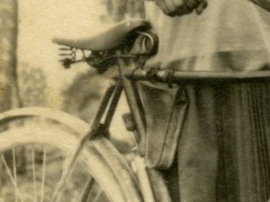 Kolesarskih hlač, podloženih z želejem ali kar je že, še ni bilo, asfalta tudi ne, zato je sedež vzmeten, da hrbtenica ni preveč trpela. Na štangi je torbica z orodjem.