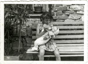 Fotografija je bila posneta junija 1970. Na njej sva Petra Kranjec (por. Kovačič), ki je bila stara dva meseca, in Vika Kranjec (por. Turšič), stara 9 let.