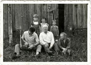 Slika je nastala poleti 1967, ko je na obisk iz Kanade prišel stric Jože. Spredaj na sliki so Janez Kranjec, Jože Kranjc in Jože Korenčan, zadaj pa Romana Kranjc, Vika Kranjec in Martina Kranjec.