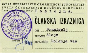 Čebelarska izkaznica Alojza Branislja iz leta 1952.
