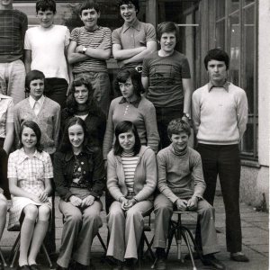 Osnovna šola Cerknica, šolsko leto 1974/75 in razredničarka Marija Turk s svojim 7. a razredom. Učenci so nasmejani in zelo dobro razpoloženi. Pomlad dela svoje, energija kar puhti iz slike, puberteta deluje, počutijo se že odrasli. Pa tudi fotograf je prispeval svoje za boljše vzdušje. Kaj bi hoteli še več. Kot je videti iz zapisa na zadnji strani slike, jim tudi angleški jezik ne povzroča preglavic. Kratki verzi, zaljubljenost ali trenutni navdih. In to je le še en dokaz več, da je puberteta že močno prisotna. Bliža se nam zadnje šolsko leto na osnovni šoli. Poigravamo se z mislimi na bodočnost. Z življenjsko odločitvijo o izbiri poklica. Srečo so imeli tisti, ki jim je že bilo kristalno jasno, kaj si želijo delati v življenju. Danes se ob pogledu na nasmejano mladost zavemo, da so bili to naši najlepši časi.