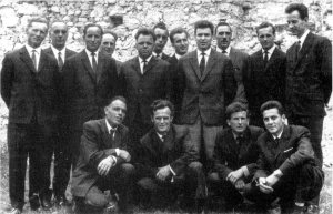 Bloški pevci so se s pevovodjo Francetom Zgoncem slikali leta 1965. Po vsej verjetnosti je bilo po kakšnem nastopu.
