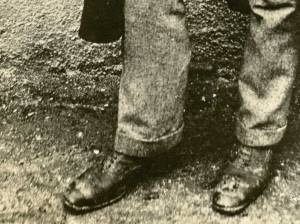 Kje vse se je možakar potikal, ne vemo. Je pa udejanjil rek »glava v zlatu, noge v blatu«. Ves spedenan kot za na ohcet, čevlji pa umazani. Drugačni ne morejo biti. Ceste niso bile asfaltirane temveč prašne. Če pa je še deževalo …Tiste dni je večina nosila čevlje, ki jih je podedovala ali pa olastninila kakšnemu mrtvecu. Če so si že privoščili svoje čevlje, so bili ti narejeni po meri, kar je stalo celo mesečno plačo. So bili pa skoraj za vedno. Naredili so jih čevljarji v delavnicah, ki so bile v vsakem večjem mestu. Izdelani so bili iz kvalitetnega usnja. Praviloma so bili visoki, da vanje nista uhajala pesek in blato. Bili so enaki za gospode in delavce, črni rjavi ali sivi.