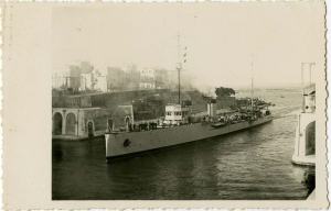 V luko plove ladja, ki je zelo podobna italijanskemu rušilcu Dardo 1935, nisem pa mogla ugotoviti, ali je prav ta. Na levi strani slike je Aragonski grad.