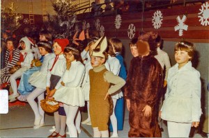 Spomin na ta dogodek hranijo dekleta iz 4. a razreda. Razredničarka Ludovika Bavdek je bila zelo ustvarjalna učiteljica in njen 4. a razred je bil na prireditvi udeležen kar z dvema točkama. Pripravili so igrico z naslovom Rdeča kapica in plesno-pevsko točko Snežinke. Rekvizite, kostume, balerinke, krilca … so si v veliki meri naredili sami v šoli, nekaj so pomagale tudi mamice. Šivale so in štrikale. Rdeča kapica se spominja, da ji je njena mamica naštrikala kapico iz rdeče volne “Jelka”. V tistih časih je lahko predstavljal problem že navaden bel pulover. Potrebnih je bilo kar nekaj ur dela, učenja in usklajevanja, da se je vse dobro končalo. V dvorani so z okrasitvijo ustvarili še dodatno novoletno vzdušje. Vsi nastopajoči in obiskovalci so v prireditvi zelo uživali.
