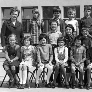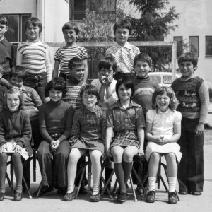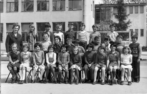 V šolskem letu 1975/76 smo v 2. b razred zakorakali pod okriljem razredničarke Lojzke Žnidaršič. Iz slike zrejo zvedavi, nasmejani in izredno simpatični obrazi učencev, ki jim hudomušno nagaja pomladni vetrič. Med učenci takoj opazimo dečka, ki nikakor ni zdržal pri miru, ampak je izvajal ročne vragolije. S tem je zabaval sošolce. To je bil Toni, ki je bil zelo rad v središču pozornosti. Tukaj, v drugem razredu, je to še delovalo kot otroško, navihano, celo prijetno. Žal se je nemirnost z leti samo še stopnjevala. In za piko na i so to njegovo razposajenost znali nekateri sošolci tudi izkoriščati, ga šuntati in se na koncu lepo umakniti. Povsod je bil, kjer se je kaj dogajalo. Velikokrat pobudnik in glavni izvajalec neumnosti. Največkrat je tudi za vse nosil krivdo, pa če je bilo to res ali ne. Bil je pač dežurni krivec razreda.