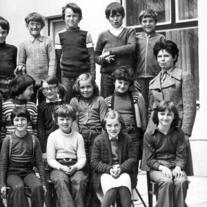 Učiteljica Zorica Hladnik in 3.b razred v šolskem letu 1976/77. Živahen razred, s katerim so se morale učiteljice kar dobro spoprijeti, da so ga obvladale.