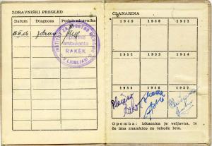 1956 Rakek – Izkaznica Telovadne zveze Jugoslavije