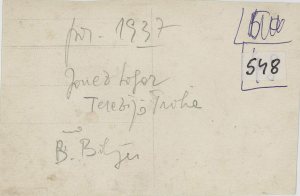 Fotografijo je pred leti nekje dobil župnik Janez Kebe in nanjo zapisal: Poroka 1937, Janez Logar, Terezija Troha, Babno Polje. To sta bila torej ženin in nevesta. Kdo pa so svatje, kdo spletienka z enakim venčkom kot nevesta? Kje so se slikali in kdo jih je? Ne bomo izvedeli.