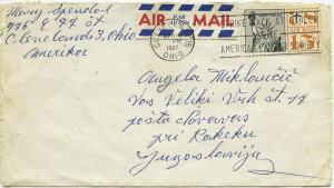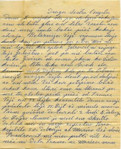 Kuverta nosi tri poštne žige: Cleveland, Ljubljana in Nova vas. Pripotovala je z letalom, torej je od oddaje pisma do prejema trajalo kak teden ali še manj. Navadna pošta, ki je potovala z ladjo, je potrebovala tri tedne ali več … Redni dopisovalci so imeli vse izračunano in pričakovanje pisma iz Amerike je bilo posebno občutje z mešanico nestrpnosti in veselja; če je odgovor zamujal kot v tem primeru, tudi slabe volje, jezice in zamere. A ko je prišlo, je za nekaj dni razvedrilo in zaposlilo prejemnika – treba je bilo vsem bližnjim in daljnim povedati o njem, izročiti pozdrave, poročati kako gre njegovim in drugim merikancem in sprejemati pozdrave, zahvale in naročila zanje …Slovarček:
