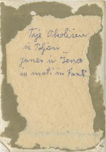 Ko sem v zalogi neobjavljenih fotografij iskala kaj, kar bi bilo povezano z začetki Kovinoplastike, me je pritegnil znan rokopis na hrbtni strani neznane slike: “To je Okolišev iz Poljan, Janez in žena in mati in Fant (ali Franc ? …).” je pisalo. Zapis je naredila tresoča roka naše tete Reze.