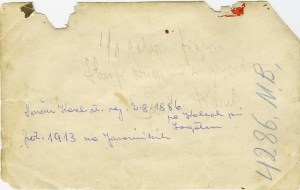 »Senčur Karel, roj. 2. 8. 1886 na Kalcah pri Logatcu. Fotografiran 1913 na Javornikih«. Kdo je podatke zapisal, ne vemo.