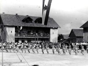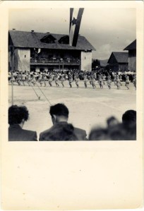 V centru Nove vasi, pred stanovanjsko Kovačevo hišo, se je nekoč, recimo leta 1956, odvijala prireditev. Mogoče so praznovali novo nastali praznik dan borca – 4. julija. Letnico prireditve ugibamo, ker na mali slikici žal ni nič zapisano. Skoraj zagotovo ni šlo le za praznovanje ob zaključku šolskega leta, saj je preveč slovesno, glede na množico nastopajočih in gledalcev. Največja možnost je praznovanje za 25. maj – dan mladosti. Nekateri se spominjajo, da so se pripravljali po vseh okoliških šolah in verjetno tukaj v Novi vasi pripravili skupinsko praznovanje. Fantje se spominjajo, da so dobili vsi enake športne kratke hlače in majice za izvedbo telovadnih vaj. Nastopat so šli enkrat celo v Koper, pa spet drugič v Ljubljano. Tam je imel vsak nastopajoči na tleh zarisan svoj prostor.