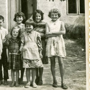 Učenci štirih razredov in razredničarka Lojzka Vidrih slikani pred vhodom v prostor osnovne šole v Cajnarjih, v Urbanovi hiši. Poleg šole je bila v tej hiši še pošta in trgovina. V ozadju je lepo viden poštni nabiralnik. Prostor pred hišo je služil kot avtobusna postaja. Lahko bi rekli, da je bil tu center vsega dogajanja. To hišo je kasneje kupil domačin, na delu v Nemčiji. Zato je dobila ime “Pri zdomcu”. Ob njej je bilo tudi balinišče. Danes pa je hiša v popolni prenovi z novim lastnikom.