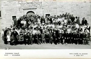 • Druga vrsta: prva je Ančka Mekina, duhovnika nismo spoznali, poleg njega je mož Ane Podobnik- duhovnikove sestre, dva neznana, Franc Jelinčič.