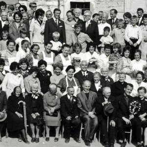 • Druga vrsta: prva je Ančka Mekina, duhovnika nismo spoznali, poleg njega je mož Ane Podobnik- duhovnikove sestre, dva neznana, Franc Jelinčič.