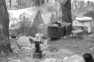 Kuhanje za šest ljudi brez vse opreme najbrž ni bilo enostavno. Iz fotografije sem razbral, da smo s seboj imeli ekonom lonec. Oče je od nekod prinesel kuhalnik na bencin ali petrolej, ki je tudi na tej fotografiji. Pred uporabo smo ga morali “napumpati” z zrakom, da je bil potem plamen enakomeren in da je gorivo dobro izgorevalo. V ta namen je bil na rezervoarju nameščen manometer in tako ni bilo treba ugibati, ali je tlak prenizek ali previsok. Tega kuhalnika smo se kar nekako bali. Ko je bil prižgan, je prav rohnel. Povrhu vsega pa si z rokami hitro prenesel vonj po petroleju na hrano, obleko …