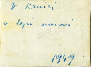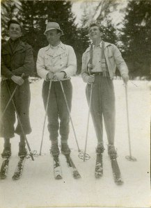 Na sliki so smučarji iz Postojne v Krnici. Desni je oče mojega nezakonskega moža, a ga ne smem imenovati, ker me bo tožil. Oblečeni so v to, kar je vsak imel doma. Nobenih smučarskih oblačil in opreme najboljših znamk. So pa fletni. Aprila tega leta je tu potekala meddruštvena tekma v veleslalomu. V časniku žal ne piše, katera društva so to bila. Lahko tudi športna. April – pa koliko je še snega!