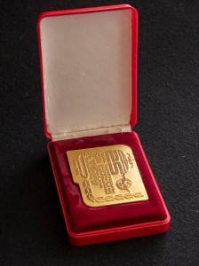 Slika »zlatega znaka« je tudi spodaj na Plaketi. Znak je precej težak in če bil bil res zlat, bi bila jaz bogata, tako imam pa samo zlato srce in gobec. Ata je bil tega vesel, čeprav je vedel, da so jih podelili ogromno. Kljub veselju jo je spravil v kovček, v katerem je hranil vse pomembne dokumente. Vedno je rekel, da če hiša zagori, bo vzel le kufr in bo imel vse papirje s sabo.