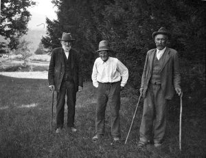 Čez mnoga leta sem s kasete poslušala in v narečju zapisovala posnetke istih zgodb, ki jih je okoli leta 1986 napravil prof. Jože Matevžič, ko so oče imeli okoli 92 let, malo preden so umrli. Takole so nadaljevali svojo pripoved – mogoče je podobna zgodbi katerega od treh mož na sliki: