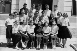 Slika je iz zaključka šolanja dijakov v Novi vasi. Tokrat so se pred neznanega fotografa postavili učenci v družbi svoje razredničarke Slavice Casol. V današnjih časih je valeta zaključna prireditev z manjšo zabavo. Takrat temu ni bilo tako. Nič praznovanja, le šopek pripet na prsih, slikanje in domov. Srečni, da so prispeli na cilj in hkrati prestrašeni, saj se podajajo v neznano, svojim ciljem in usodam nasproti.
