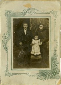 Fotografija je bila izdelana okoli leta 1906. Na fotografiji Matevž, njegova žena Reza in otrok.