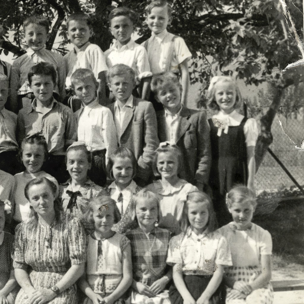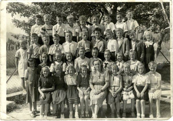 - Spredaj sedijo od leve: Vanja Perušek, Ivana Žagar, Irena Mulec, Draga Grl, učiteljica Ivanka Kordiš, Marija Avsec, Marija Mulec, Malka Šega in Joža Groše.