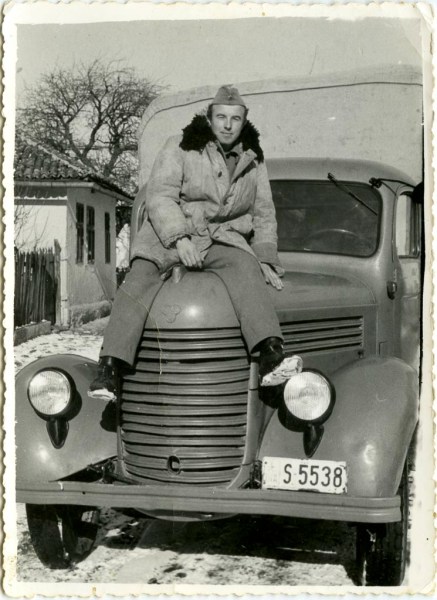 V takih okoliščinah je nastala danes objavljena fotografija vojaka Jožefa Sterleta, Mlakarjevega iz Dan, točneje s Škrilj, ki sedi na haubi Tamovega vojaškega tovornjaka.