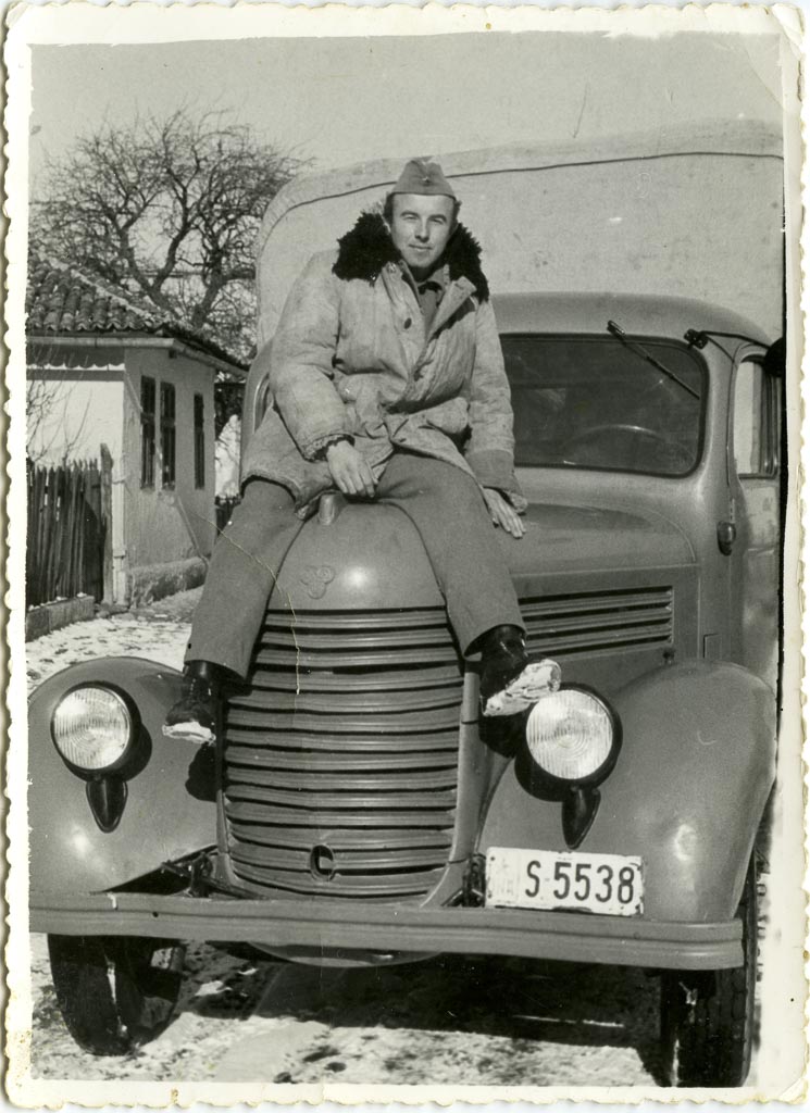 V takih okoliščinah je nastala danes objavljena fotografija vojaka Jožefa Sterleta, Mlakarjevega iz Dan, točneje s Škrilj, ki sedi na haubi Tamovega vojaškega tovornjaka.