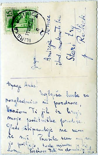 Razglednico Snežnika je 1962 iz Ilirske Bistrice poslalo dekle (imena ne razberem jasno) prijateljici v Stari trg. Notranjski Snežnik, dvoglavi vrh (Veliki Snežnik 1796 m; Mali snežnik, 1694 m) je najbolj južna gora tolikšne višine. Samo zaradi precejšnje odmaknjenosti na jug ta najvišji zunajalpski vrh ni vključen v Slovensko planinsko pot, ki poteka od Nanosa čez Slavnik k morju.