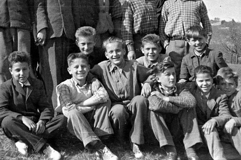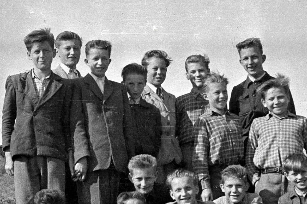 Kaj jim je povedal fotograf, da so se tako nasmejali? Bilo je aprila ali maja in zdi se, kot da bi bile v ozadju cvetoče slive, ki bodo na jesen dale priložnost narabutati pest sadežev za obogatitev skromne internatske hrane … Kljub soncu so fantje večinoma v suknjičih, vsi pa so v dolgih hlačah s pasom – obdobje hlač z naramnicami so že davno prerasli. Trije fantje so v skoraj enakih karirastih srajcah, kar takrat ni bilo nič nenavadnega, kajti izbire blaga je bilo malo. Tudi ni rečeno, da so bile srajce že kupljene strjene, to je že izdelane, ampak so jih najverjetneje naredile vaške šivilje. Tudi jope, lajblci, hlače in rieklci so – po meri kdo ve koga – delo krojačev in šivilj, mam, tet in starih mam. Nobenih bund in vetrovk, nobenih nogavic, ki razkazujejo gole gležnje v modernih supergah. Dva dečka sta obuta v tanke platnene športne copate, ki so bili zelo imenitni, ne pa tudi topli, trpežni in zdravi za noge.