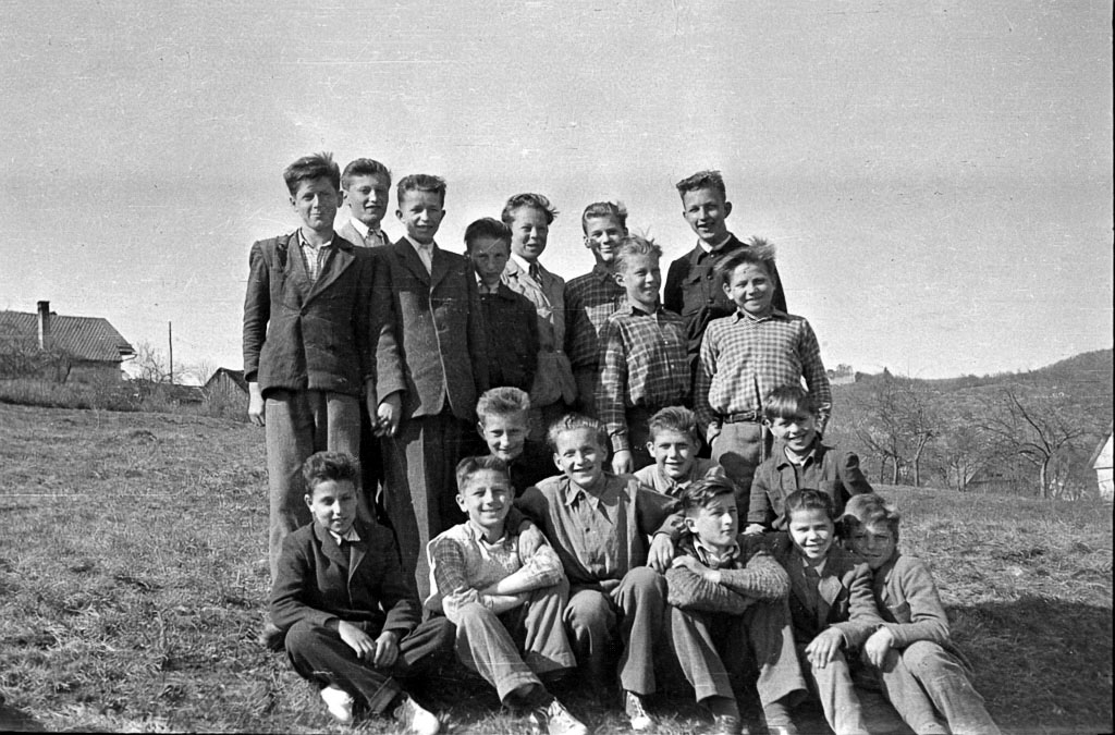 Leta 1953 – tako je pisalo na listku, ki je bil priložen filmu – je učitelj Vinko Toni fotografiral to skupino dečkov nekje na pobočju Ulake. Obrnjeni so proti jugu, proti soncu, in zato dobro osvetljeni, za njimi se na levi vidi nekaj streh na Mandrgah, na desni pa sadno drevje in v daljavi Pusti grad z ruševinami Loškega gradu.