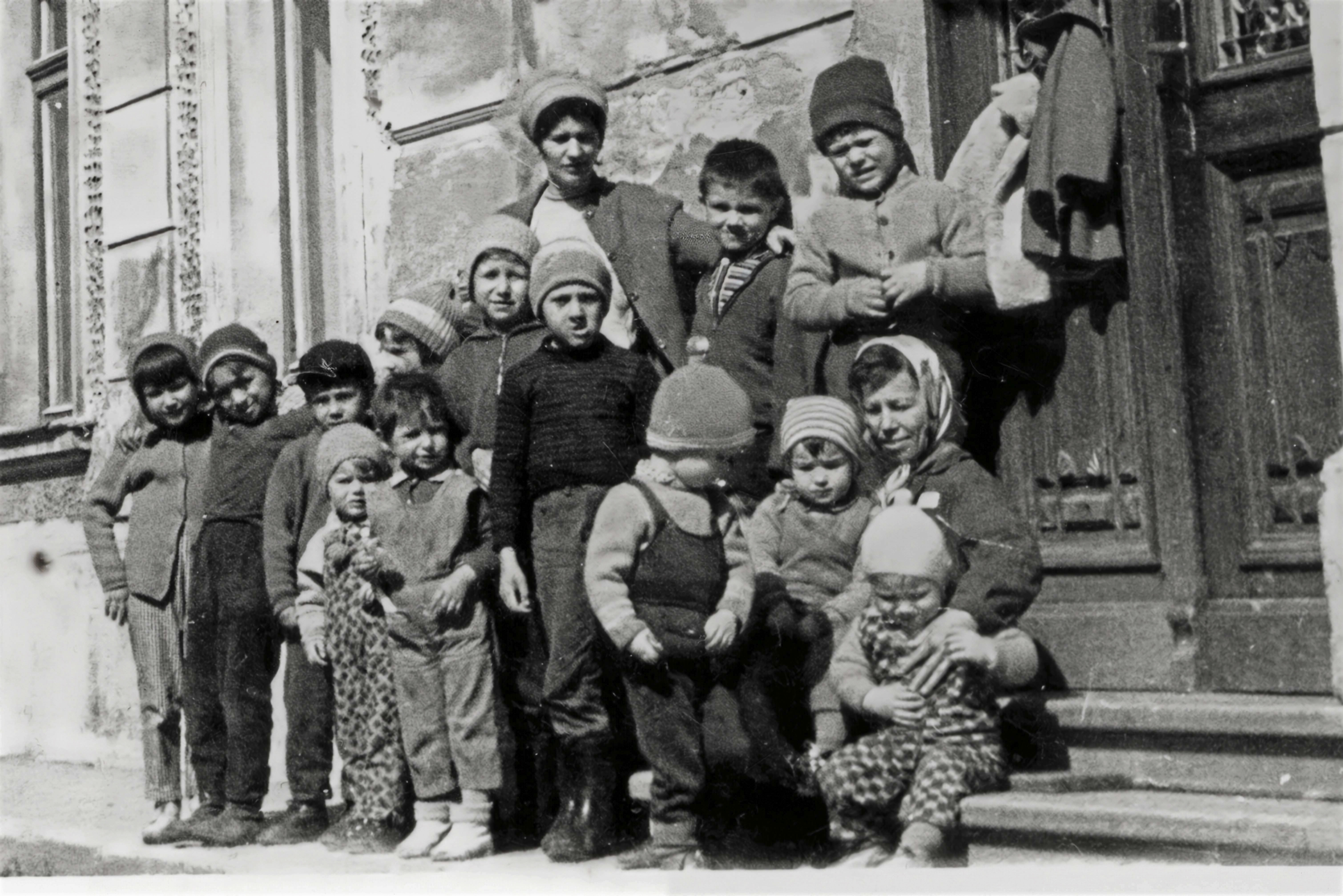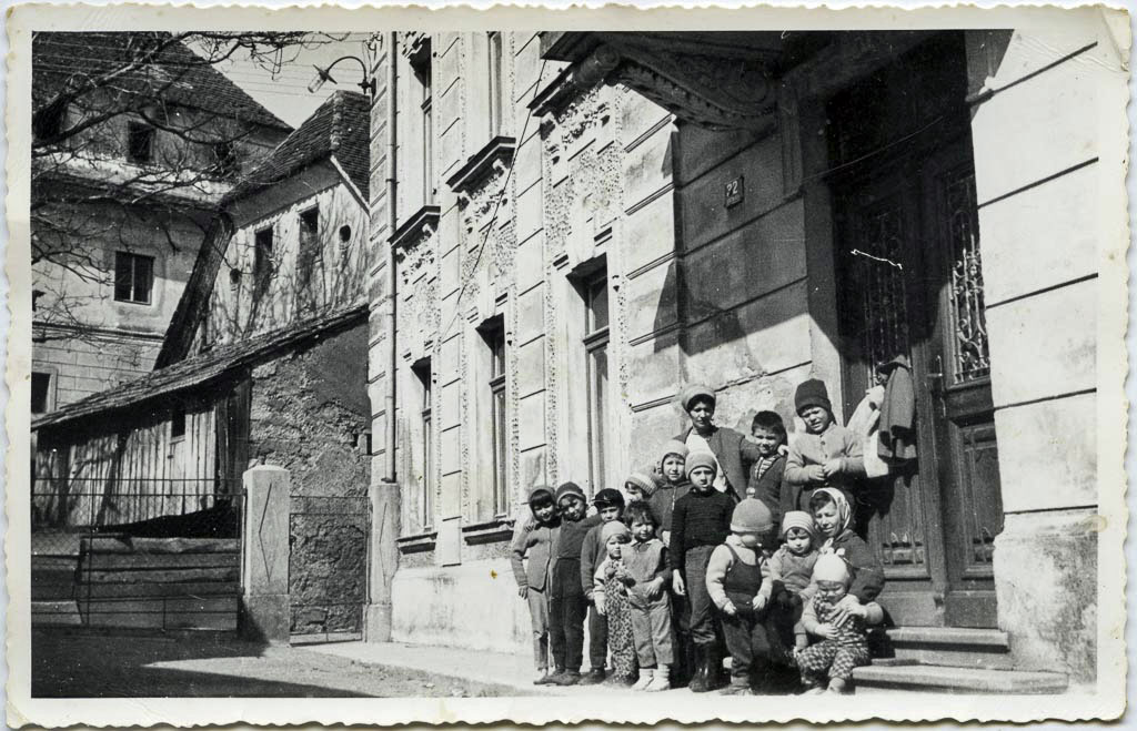 V prijateljskem objemu čez ramo sta prva z leve Silvana Lah neznana1 in Vito Kralj. Sledi Zlatko Mehadžič. Pred njim najmanjšega ne prepoznamo, naprej sledi Andreja Kralj. Za njo otroka v kapi z belo črto ne poznamo. Sledi Zlatka, starejša sestra iz družine Kralj. Pred njo je Lado Šivec. Otrok s kapico na glavi je neznan Silvana Lah1. Na kolenih kuharice Albine Repež sedi Mojca Tušar in najmanjšega, ki sedi na stopnici, prav tako ne prepoznamo.