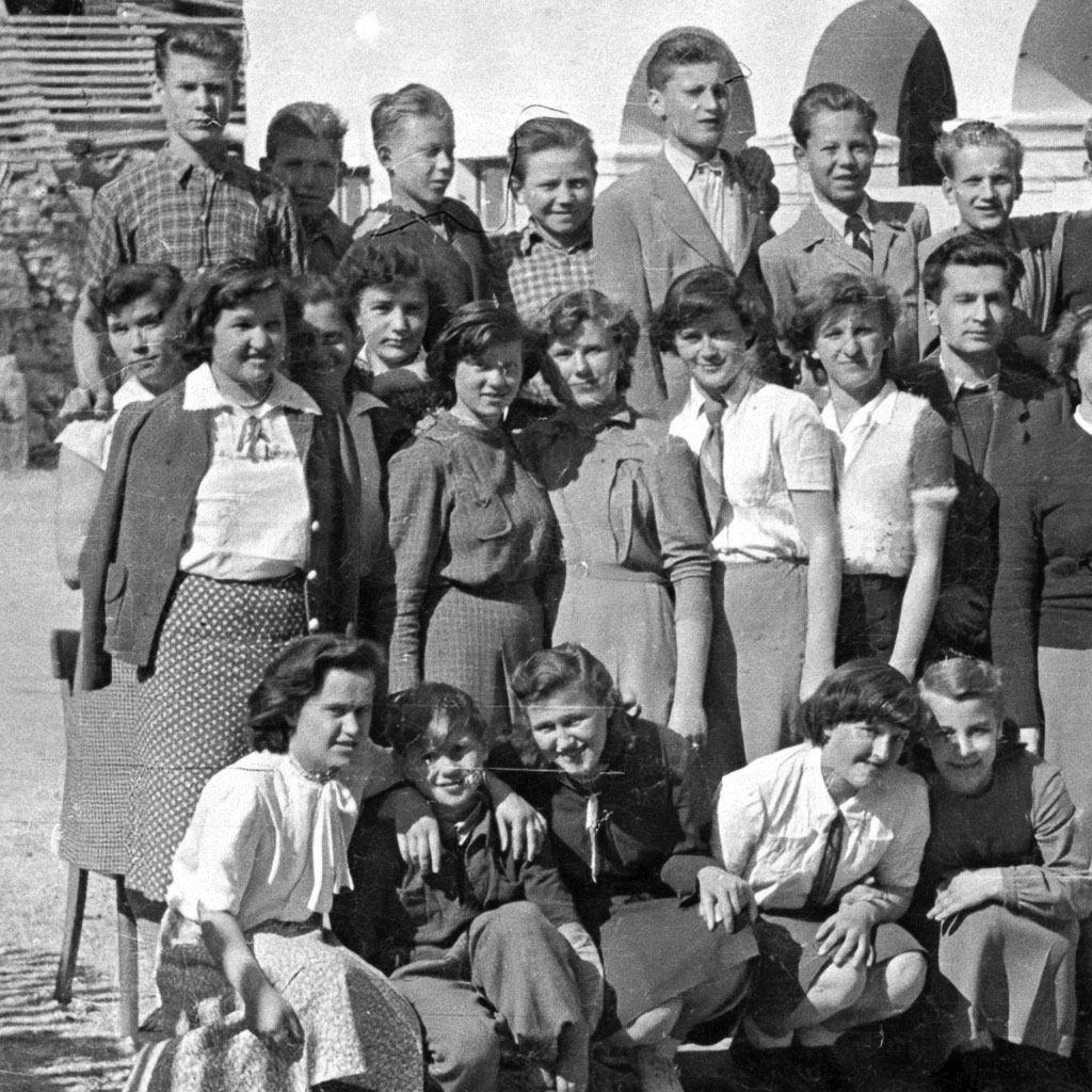 Prvotno prepričanje, da gre na tej sliki za dijake iz starotrškega dijaškega doma leta 1953, je bilo kmalu ovrženo: gre za razred Nade Debevec, učiteljice doma z Rakeka, ki ga je posnel Vinko Toni. So pa med njimi tudi internatarji, večinoma neprepoznani. Če bi se slikali samo stanovalci internata, bi bili po velikosti in starosti zelo različni.
