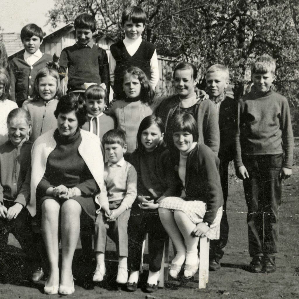 V šolskem letu 1969/70 je bila Boža Turk razredničarka 4. razreda v Novi vasi. Na slikanju se jim je pridružil tudi ravnatelj Franc Čebohin. Slikani so na šolskem vrtu.