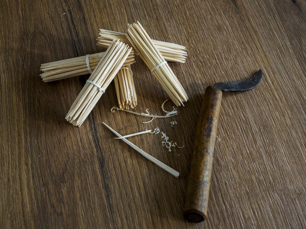 Včasih, ko smo bili še vsa družina doma, ko še ni bilo zaposlitve in so bile dolge in hude zime, smo bili cele dneve v hiši, smo se ukvarjali z obrezovanjem zobotrebcev. To je bila pravzaprav na podeželju domača obrt za celo družino. Leskovega lesa je bilo dovolj, časa tudi nekaj, zaslužka je pa le bilo.