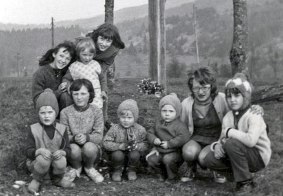 Iz slike je razvidno, da so bile naše mame pridne pri pletenju jopic in kap. Zalka ima še posebej lepo kapo, dvobarvno. Z občudovanjem smo se čudili, kako to, da v drugih krajih otroci nosijo tako drugačna oblačila. Ko smo dekleta nekoliko odrasle, smo nosile najlonske nogavice. Spomnim se, kako nas je mama učila vsako luknjico takoj zakrpati. Z drobnimi prsti smo sukale šivanko, se mučile z nitjo zadeti luknjico na njej, tudi pravi vozel na koncu niti je bil cel podvig, potem pa smo z neenakomerno dolgimi šivi zakrpale raztrgane nogavice. Vanje smo dale leseno gobo, da je nogavico lepo napela in potem smo vtikale šivanko z leve na desno, pa od spodaj gor, sem ter tja… dokler ni bila luknja zakrpana. Na koncu smo s škarjami potolkle po gobi, da so se šivi čim bolj sploščili. Veliko uporabnih stvari so nas starši naučili.