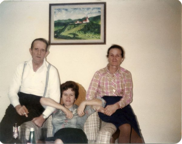 Najstarejša Smrekarjeva sestra Mima in njen mož Rudolf sta leta 1979 obiskala sina Vinka v Kanadi, ki se je takrat tam poročil … Med njima sedi najmlajša sestra Anica, h kateri so romala Mimina pisma z verzi. Oljna slika na steni, ki jo je naslikal Mimin in Rudolfov sin in Vinkov brat Rudi Košmrlj, pa prikazuje cerkvici na Hribu v Loškem Potoku … Le kaj bi lahko bolj veselilo Potočana, ki živi v Torontu?