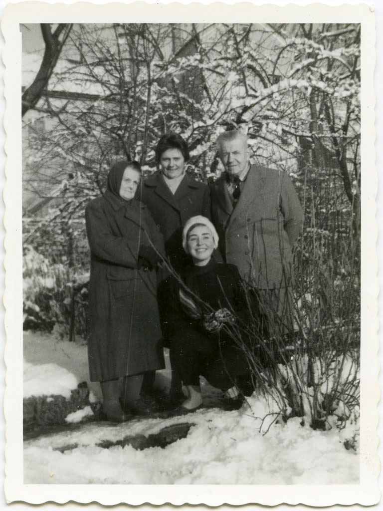 Na sliki so od leve Marija Pehovsky, Gabrijela (Jelka) Matičič, Ante Košmelj in Helena Pavlin – Gabrenjeva. Slika je nastala približno leta 1960 na Rakeku.