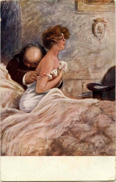 Slika ima naslov »Doktor«. En star ofucan zdravnik posluša pljuča ali pa srce res luškani deklici – z ušesom, ker je stetoskop »pozabil« v ordinaciji. Recimo. Razglednica je kromolitografija. Ustvaril jo je Albert Andréj Guillaume, francoski žanrski slikar (1873 – 1942). Poleg razglednic je risal oziroma slikal še plakate, ilustracije in karikature. Na njih je satirično prikazoval meščansko življenje v Parizu. Kmalu so odkrili njegov talent in začel je dobivati naročila znanih publikacij: Le Figaro, Gil Blas, Le Pays de France in Le Frou-Frou. Risal je reklamne plakate in napovedi gledaliških predstav. Skupaj z bratom Henrijem sta ustvarila umetniški prispevek za svetovno razstavo v Parizu leta 1900 pod naslovom »Théâtre des Bonshommes Guillaume«. Za upodobitev znanih osebnosti v podobi satiričnih lutk sta bila nagrajena z bronasto medaljo in deležna velikega javnega priznanja. Predstavo je akustično spremljal fonograf. Guillaumova najboljša in najuspešnejša dela so bila objavljena v zbirki “Les maîtres de l’affiche”, kar v prevodu pomeni “Mojstri plakata”.