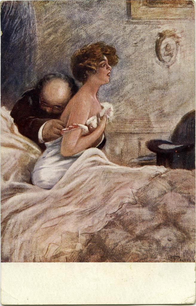 Slika ima naslov »Doktor«. En star ofucan zdravnik posluša pljuča ali pa srce res luškani deklici – z ušesom, ker je stetoskop »pozabil« v ordinaciji. Recimo. Razglednica je kromolitografija. Ustvaril jo je Albert Andréj Guillaume, francoski žanrski slikar (1873 – 1942). Poleg razglednic je risal oziroma slikal še plakate, ilustracije in karikature. Na njih je satirično prikazoval meščansko življenje v Parizu. Kmalu so odkrili njegov talent in začel je dobivati naročila znanih publikacij: Le Figaro, Gil Blas, Le Pays de France in Le Frou-Frou. Risal je reklamne plakate in napovedi gledaliških predstav. Skupaj z bratom Henrijem sta ustvarila umetniški prispevek za svetovno razstavo v Parizu leta 1900 pod naslovom »Théâtre des Bonshommes Guillaume«. Za upodobitev znanih osebnosti v podobi satiričnih lutk sta bila nagrajena z bronasto medaljo in deležna velikega javnega priznanja. Predstavo je akustično spremljal fonograf. Guillaumova najboljša in najuspešnejša dela so bila objavljena v zbirki “Les maîtres de l’affiche”, kar v prevodu pomeni “Mojstri plakata”.