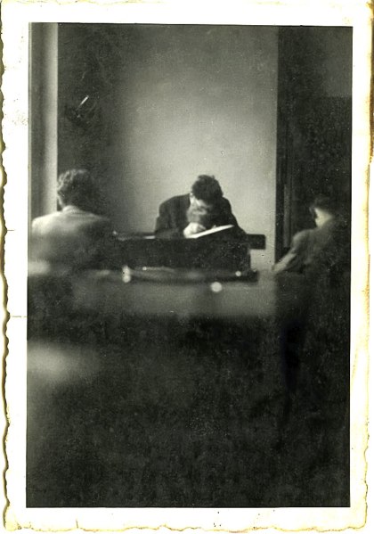 Ivan Ileršič z Rakeka je obiskoval pilotsko šolo v Mostarju. Kasneje je tam tudi nekaj časa poučeval. Na sliki je v učilnici in nekaj piše. Upam, da ne kakšen cvek v redovalnico. Učenci mirno sedijo in čakajo.