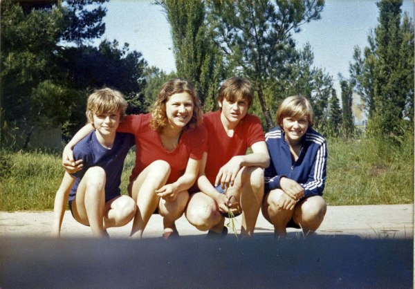 Pred seboj imamo sliko štirih prijateljev osmega razreda. Nastala je povsem spontano na dvodnevnem izletu v Puntiželi pri Puli. Šli so z avtobusi, ki so jih vozili domači šoferji. V spominu sta ostala g. Maček in g. Hladnik, ki je imel s seboj harmoniko in zvečer druščini tudi zaigral. Spali so v nekem počitniškem domu, dekleta v enem delu, fantje v drugem. Z razposajenostjo so povzročali preglavice razrednikom, kot tudi učitelju telovadbe Francu Popku, ki jih je spremljal.