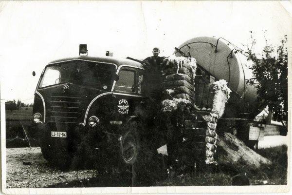 Še pred odhodom v JLA je Jože nekaj časa vozil za Kovinsko, po odsluženi vojaščini pa je presedlal na Avto Kočevje, od koder je prva slika iz leta 1961. Kraj in avtor tega posnetka nista znana. Na tovornjaku je Jožetov kolega Silvo Meh iz Ribnice. Vozilo ima naloženo velikansko cisterno oziroma sod za beton, kakršne so izdelovali v tovarni Itas Kočevje. Ta je bil izdelan šesti po vrsti. Namenjeni so bili na neko gradbišče v Skopju. (Ponuja se povezava s popotresno obnovo Skopja iz leta 1963, vendar se letnici ne ujemata). Prometne razmere so bile take oziroma tisti tovor takih dimenzij, da so morali med potjo na jug včasih z ranto dvigniti električne žice, da je šlo vozilo lahko pod njimi naprej po cesti … Na sliki se vidijo tudi bale odpadne preje, ki se rabi za čiščenje strojev, naložene v Reki …