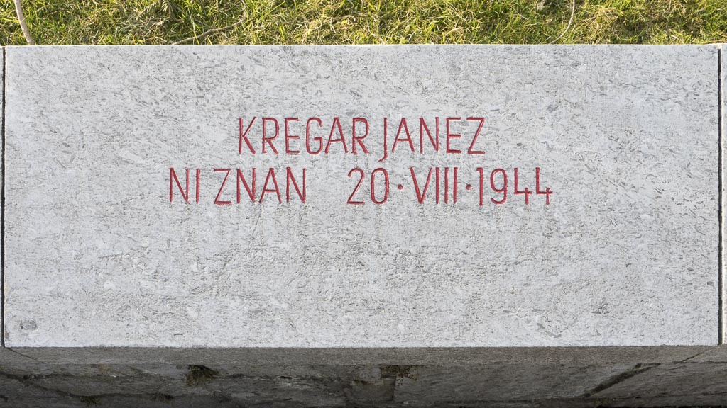 Na partizanskem grobišču na pokopališču v Cerknici je na kamnitem bloku vpisano ime Janez Kregar brez datuma njegovega rojstva a z datumom smrti 24. 8. 1944. Njegovo življenjske zgodbe ne poznamo, niti nam znani podatki o njem.