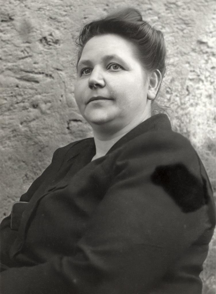Debelušno gospo na tej sliki sem videla na vsaj še dveh fotografijah in tudi sicer se mi zdi znana, a za vse na svetu ne vem kdo je. Jo bo prepoznal kdo od bralcev? Zaradi frizure in obleke me nekoliko spominja na Špetnakovo gospo, a ta na sliki ni (še?) svetlolasa. Redke so bile v tistem času tako lepo zaobljene ženske, več je bilo pretirano kumrnih, zgaranih, pretegnjenih, sključenih, čotastih, grbastih. Portretna slika je, sodeč po ozadju, posneta po vojni pred letom 1954 pred Mavkotovo hišo, nekje na vrtu pa skupinska nekako prav takrat. Kdo je neznanka? Kmetica ali delavka skoraj gotovo ne. Amerikanka ali sorodnica iz mesta?… Gotovo so jo vaščanke blagrovale, kako dobro ji je in kako zdrava je, ko je tako lepo okrogla. Takrat je bilo debelo še lepo … Rubens je že vedel zakaj.