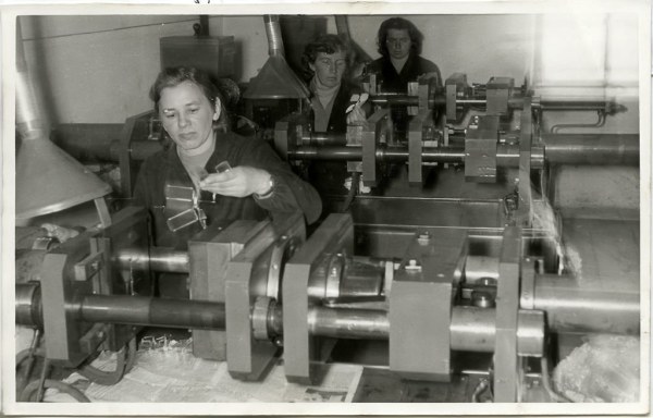 Na sliki, nastali med leti 1959, ko je Kovinoplastika začela s proizvodnjo plastičnih izdelkov v Zadružnem domu v Pudobu, in letom 1963, ko se je moja mama, ki je tudi na sliki, ponesrečila in potem ni več delala tukaj, vidimo tri delavke pri strojih za brizganje izdelkov iz plastične mase.
